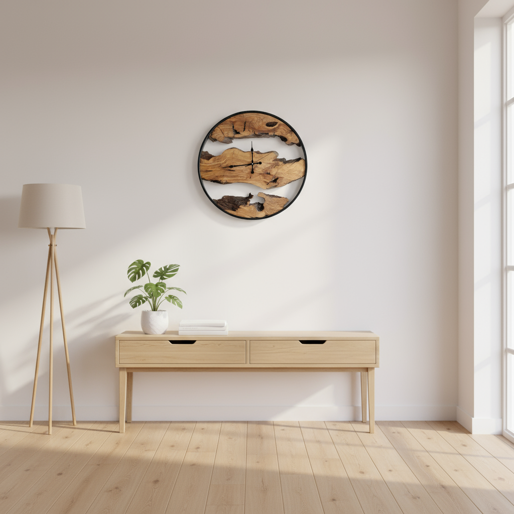 Olive Wood and Metal Wall Clock | Unique Rustic Home Decor