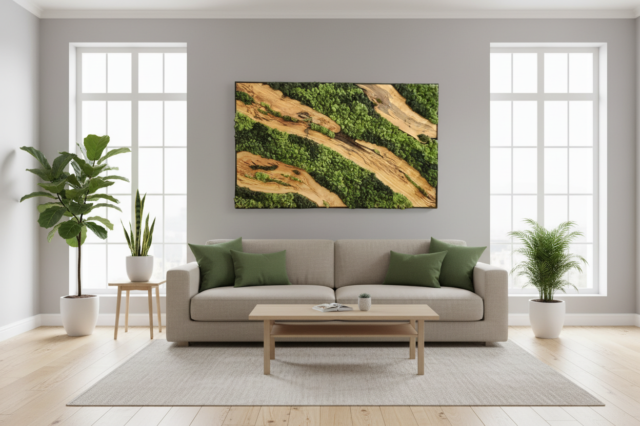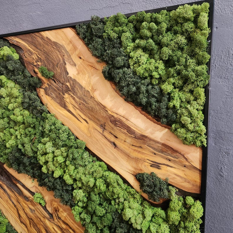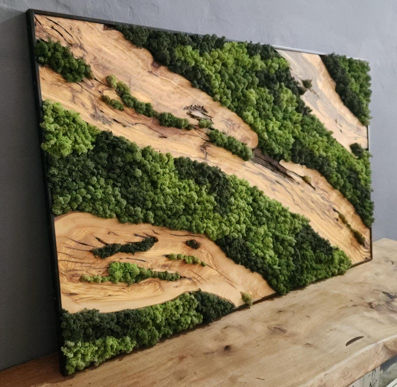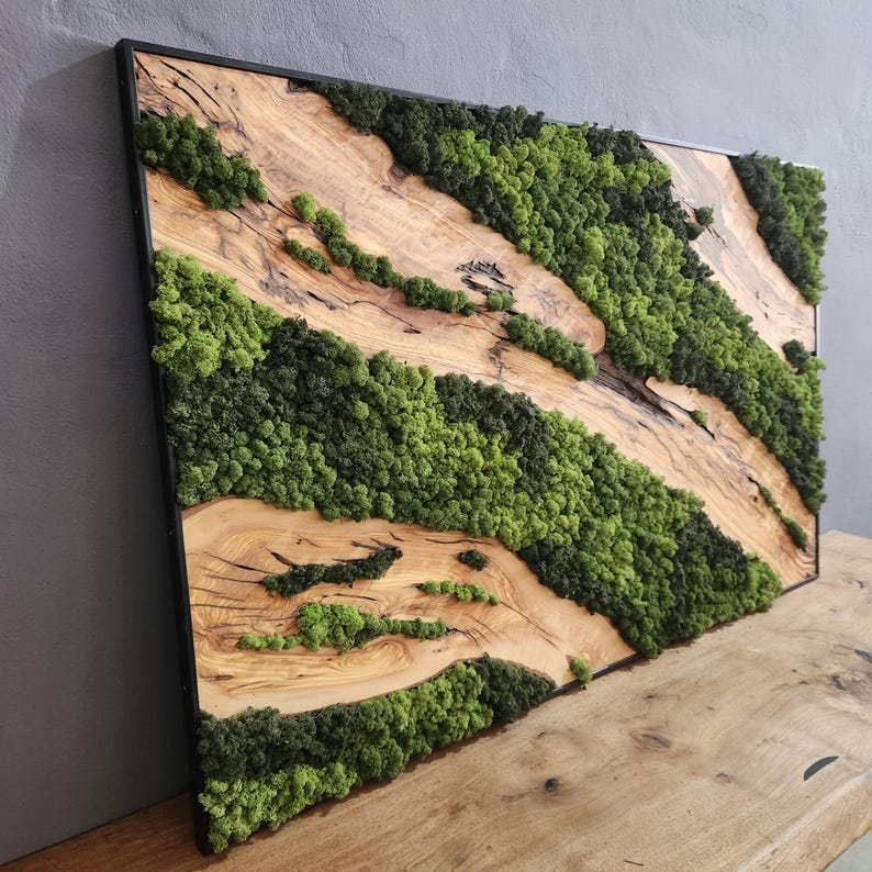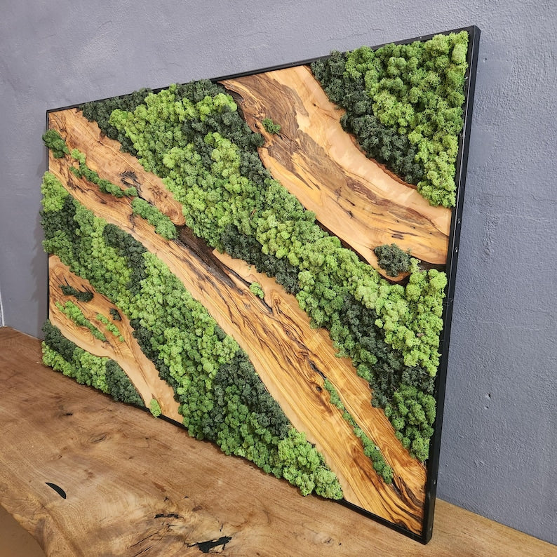 Custom Made Preserved Moss & Olive Wood Wall Art – Unique Natural Home Decor