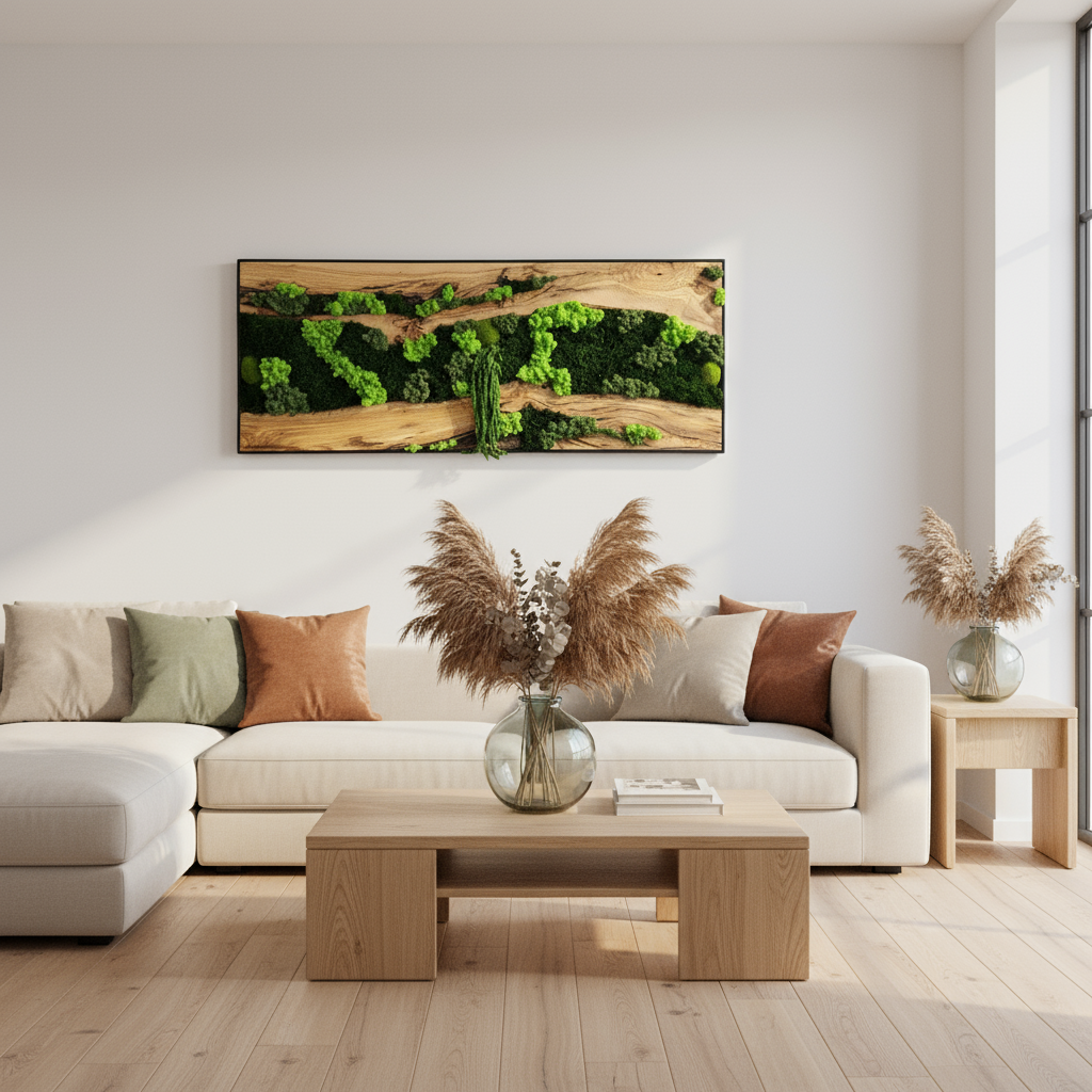 Handcrafted Moss & Olive Wood Wall Art – Unique Natural Home Decor