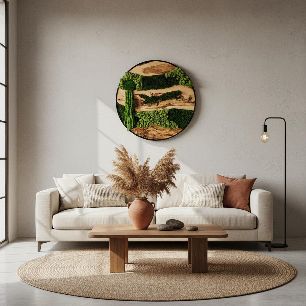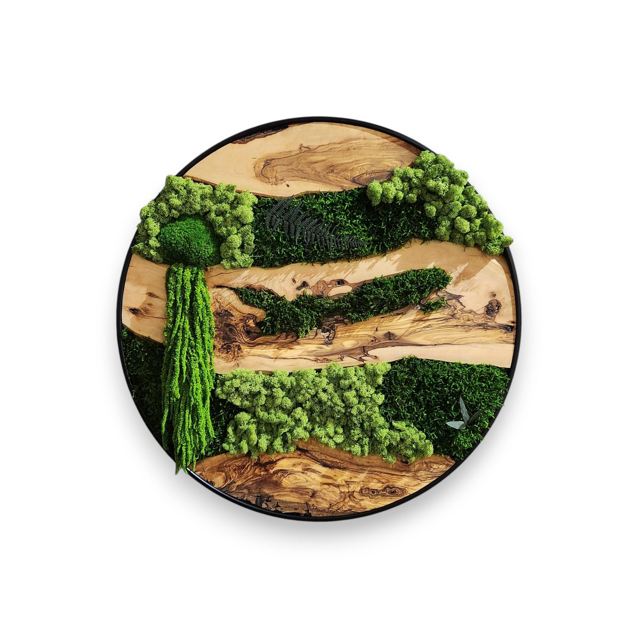 Handcrafted Olive Wood and Preserved Moss Wall Art