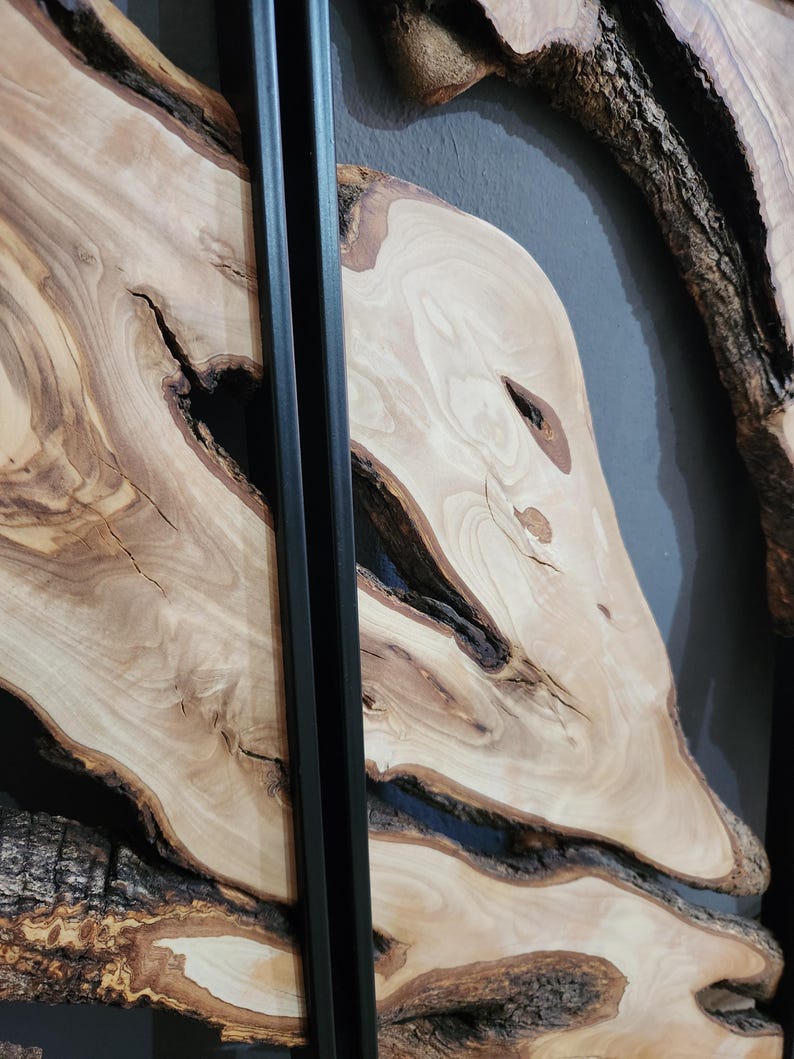 Add a touch of sophistication and natural warmth to your home with this custom-made metal and olive wood wall art. Each piece is handcrafted with precision, combining olive wood and sleek black metal to create a timeless statement that complements both modern and rustic interiors.