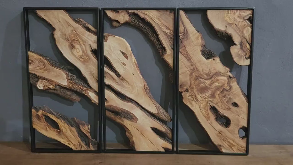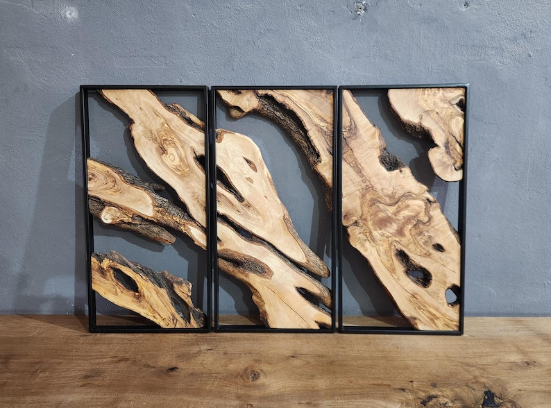 Olive Roots Trio | Metal and Olive Wooden Wall Art