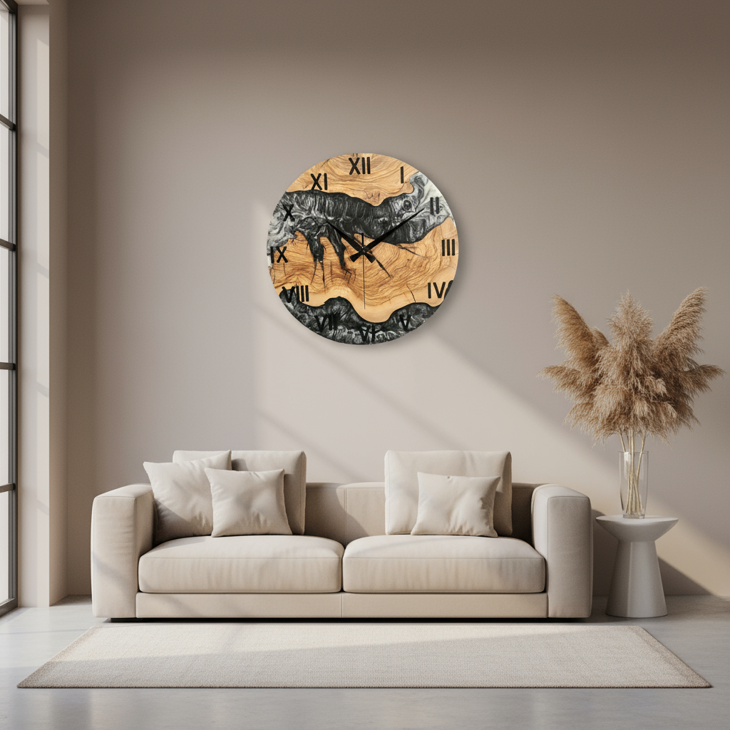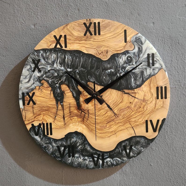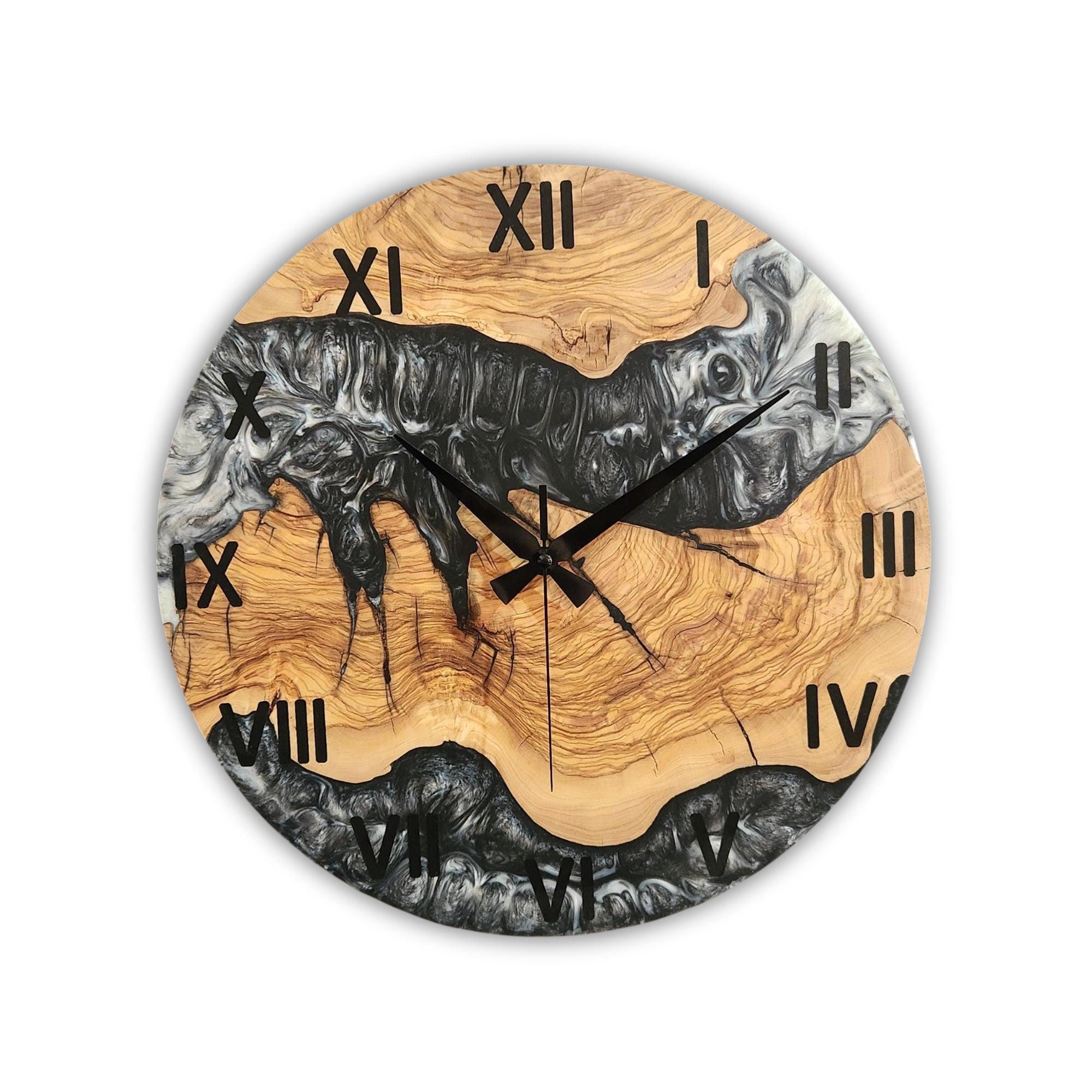 Black & White Epoxy Resin Olive Wood Wall Clock | Live Edge Design