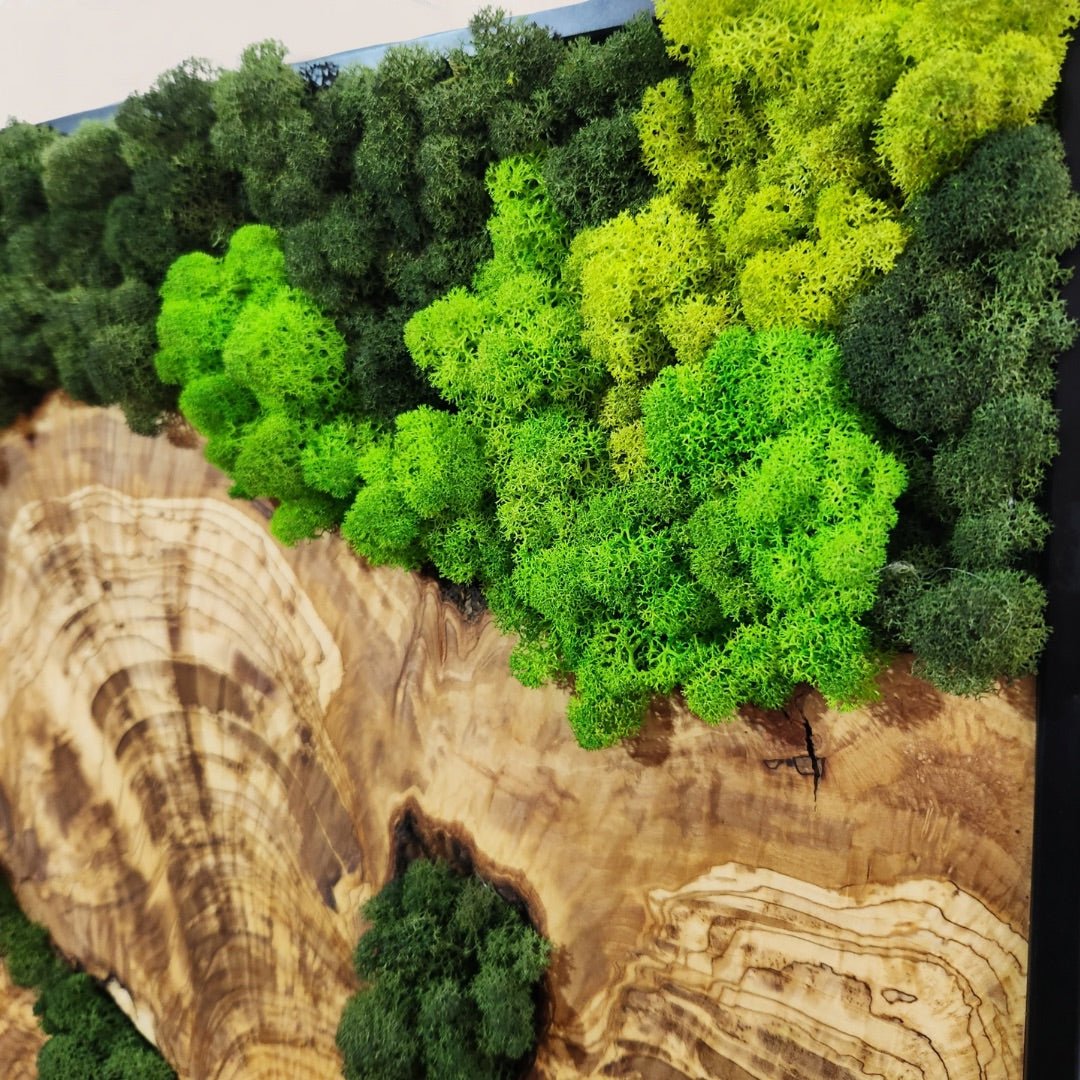 Custom Moss and Olive Wood Wall Art | Metal Frame | Preserved Moss Decor