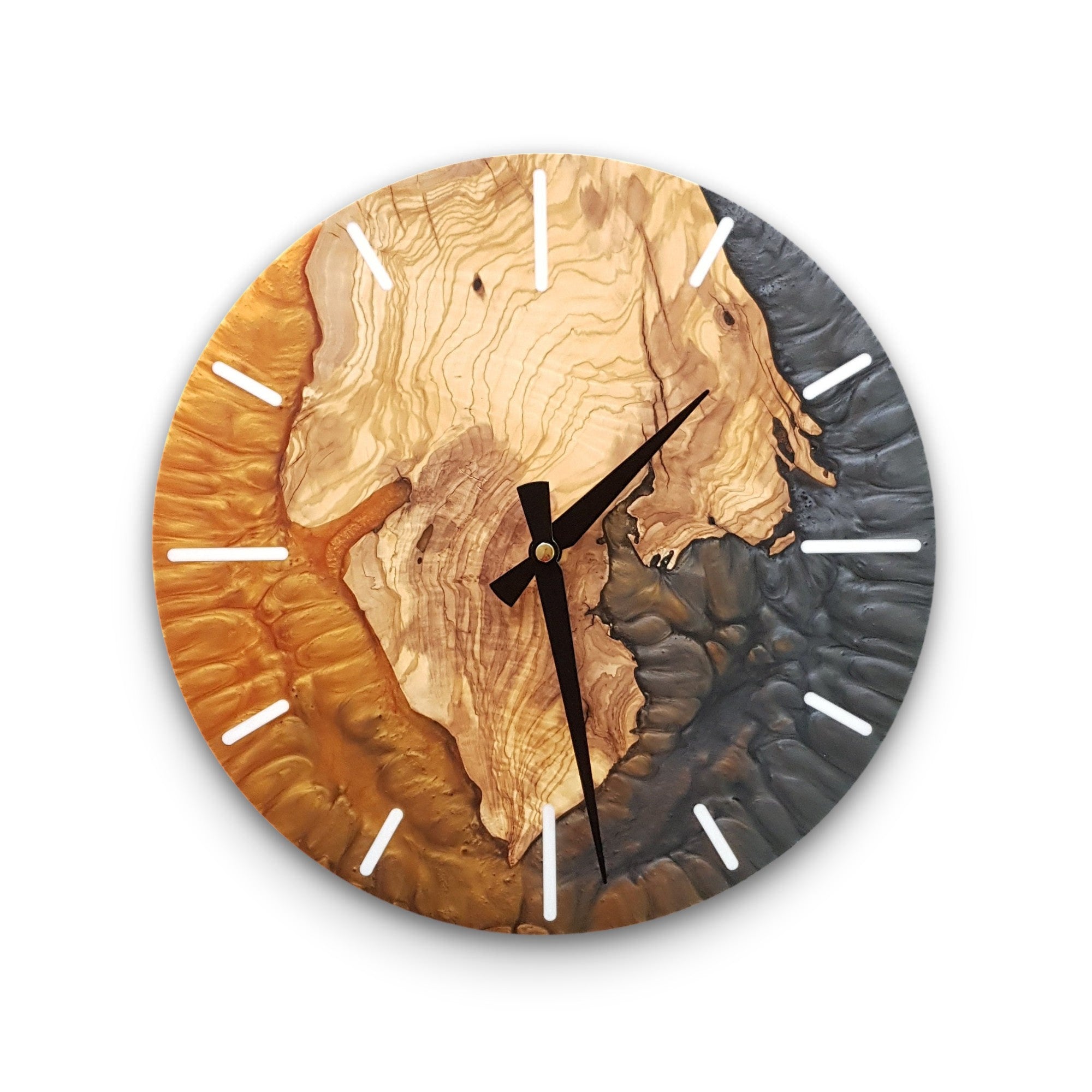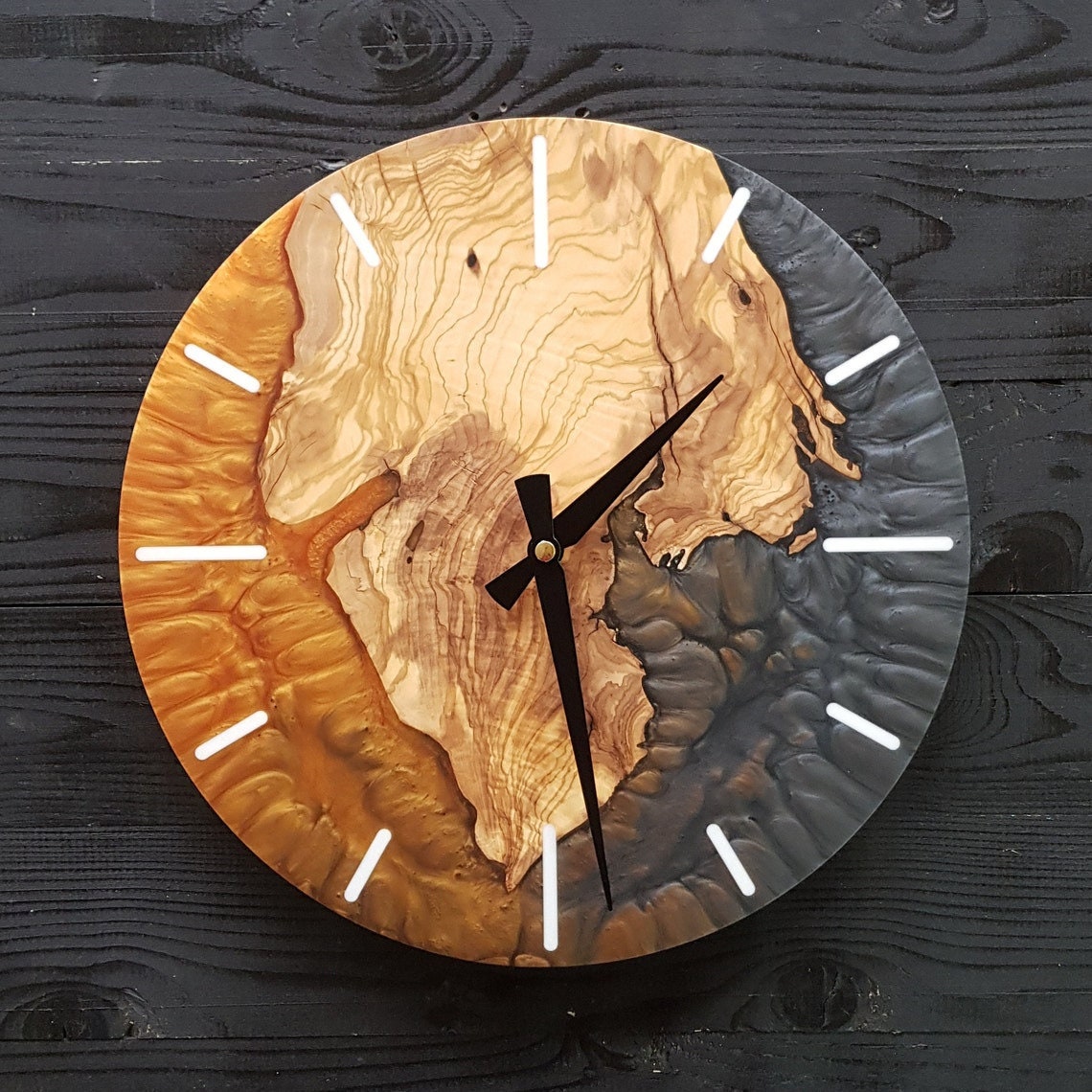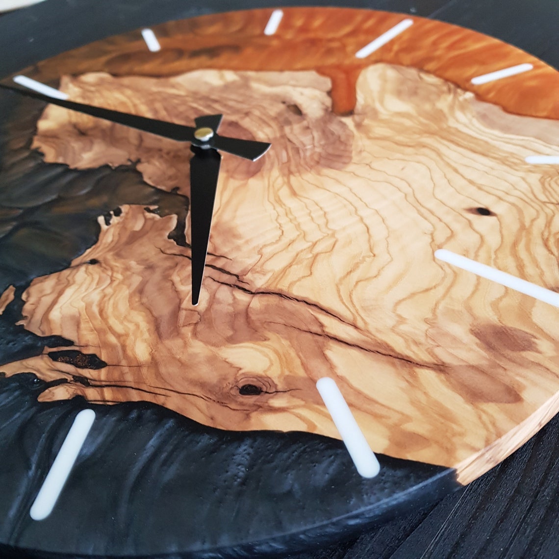 Custom Resin & Olive Wood Wall Clock | Live Edge Rustic Home Decor