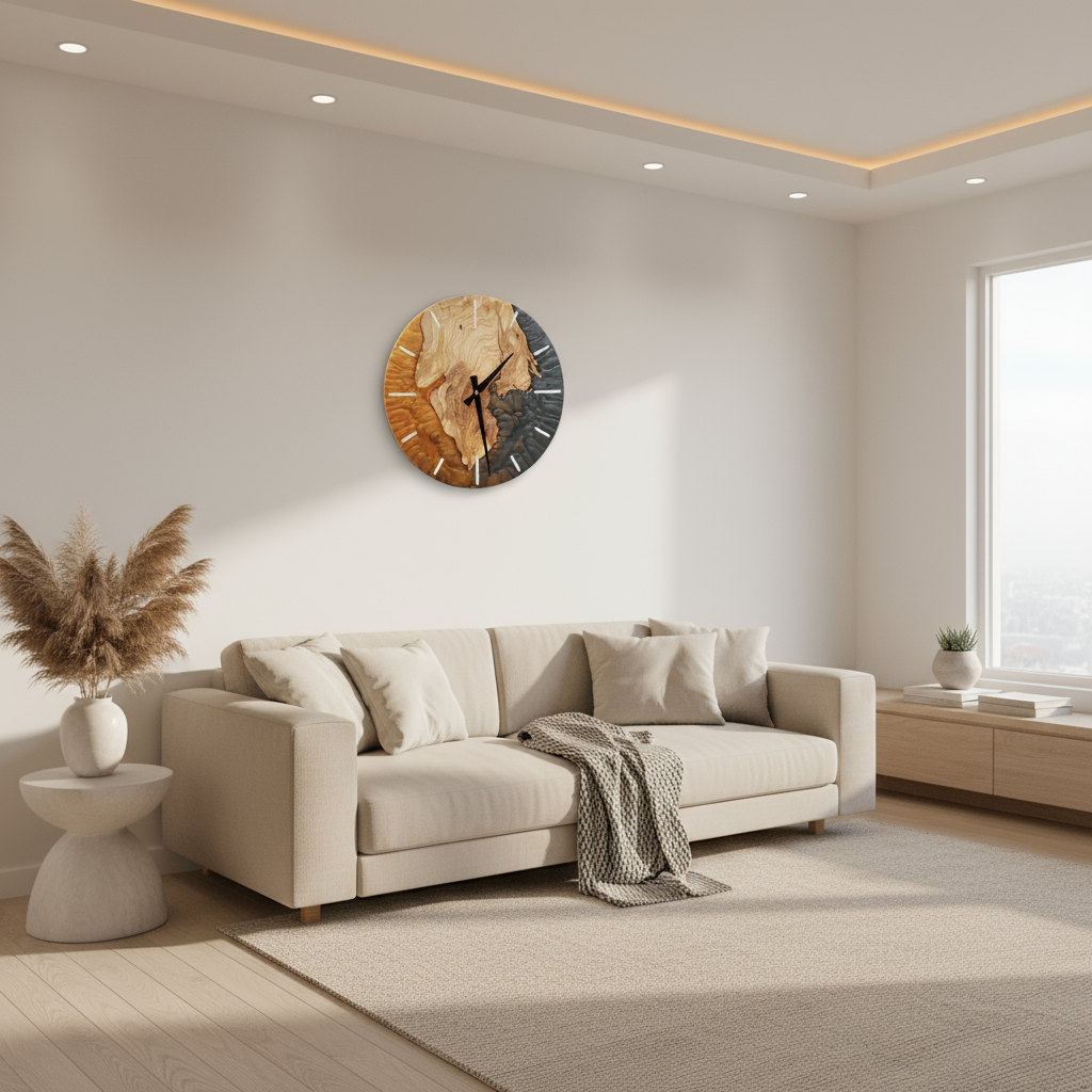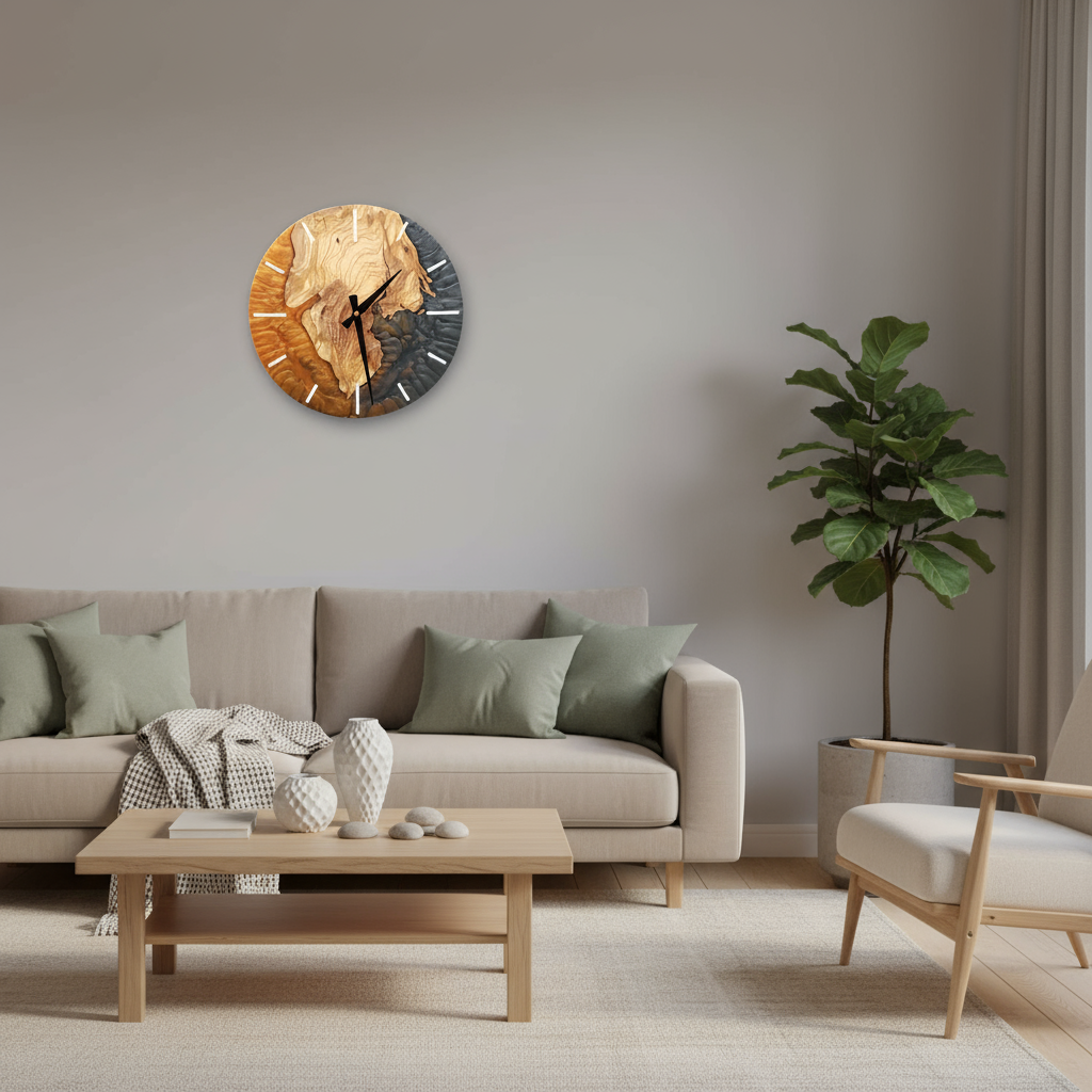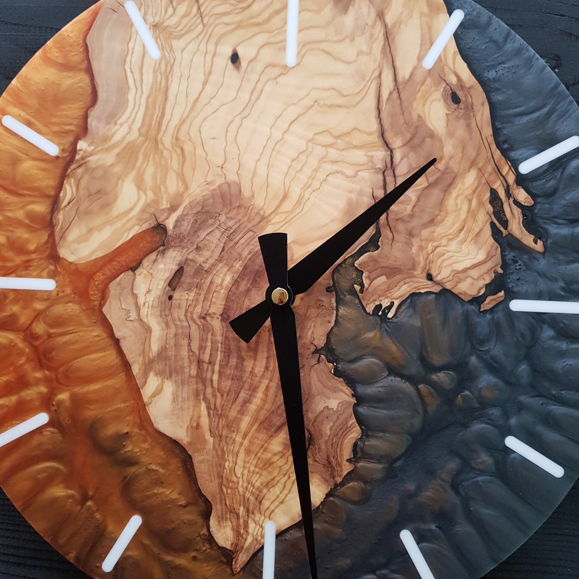 Custom Resin & Olive Wood Wall Clock | Live Edge Rustic Home Decor