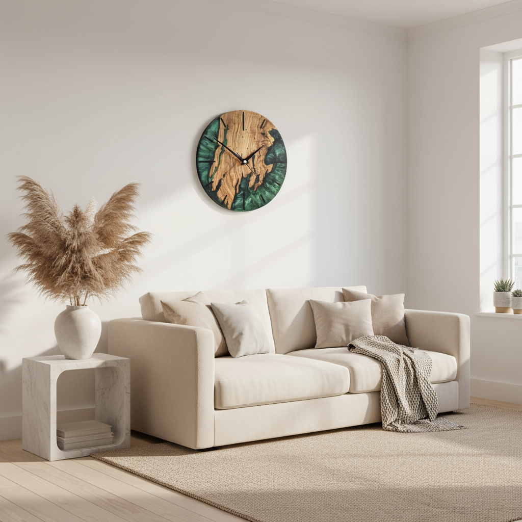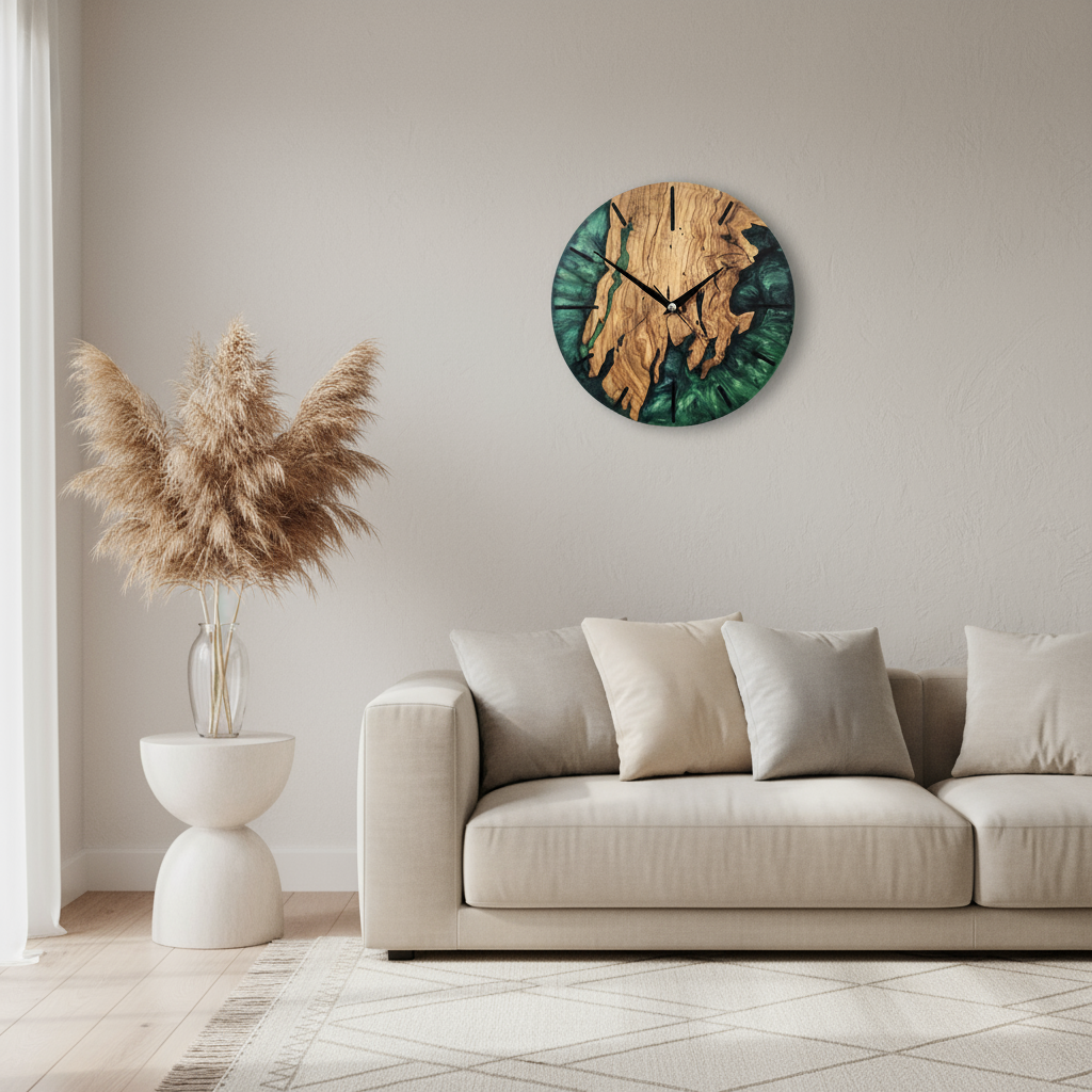 Green Resin Wall Clock | Live Edge Rustic Wall Clock