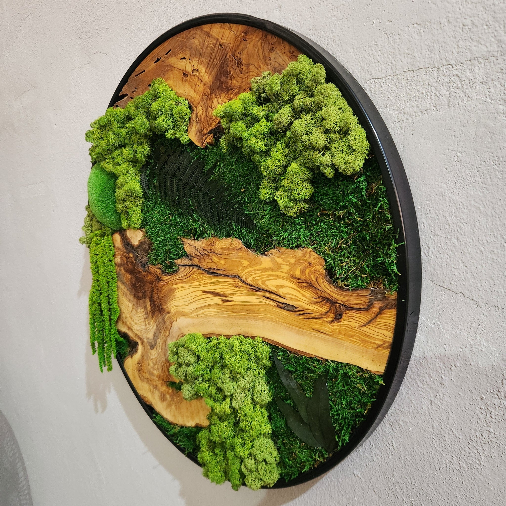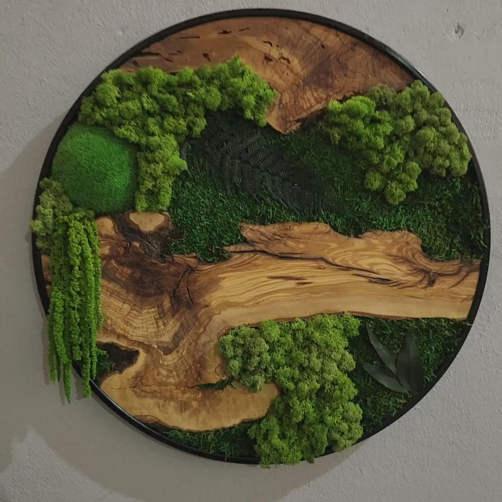 Moss and Olive Wood Wall Art in Metal Frame