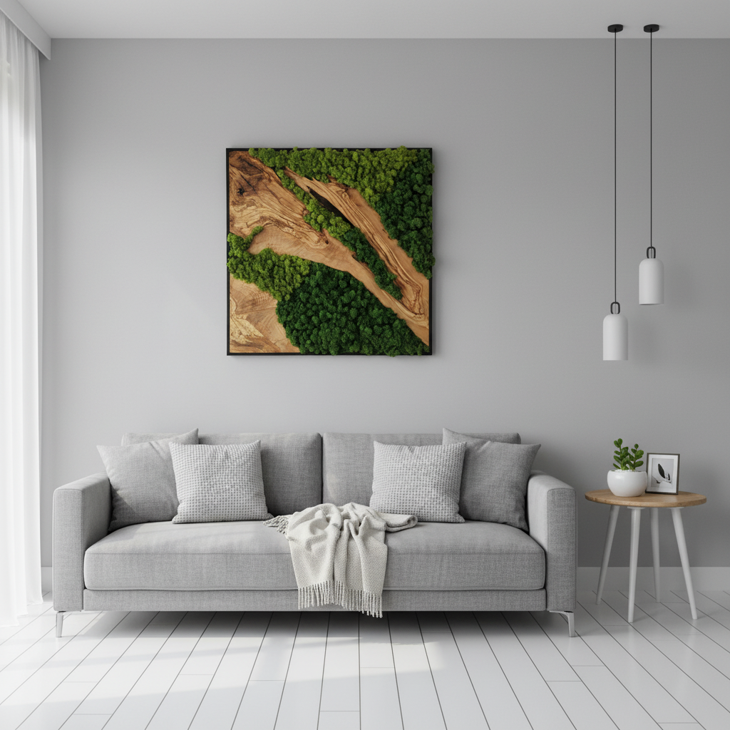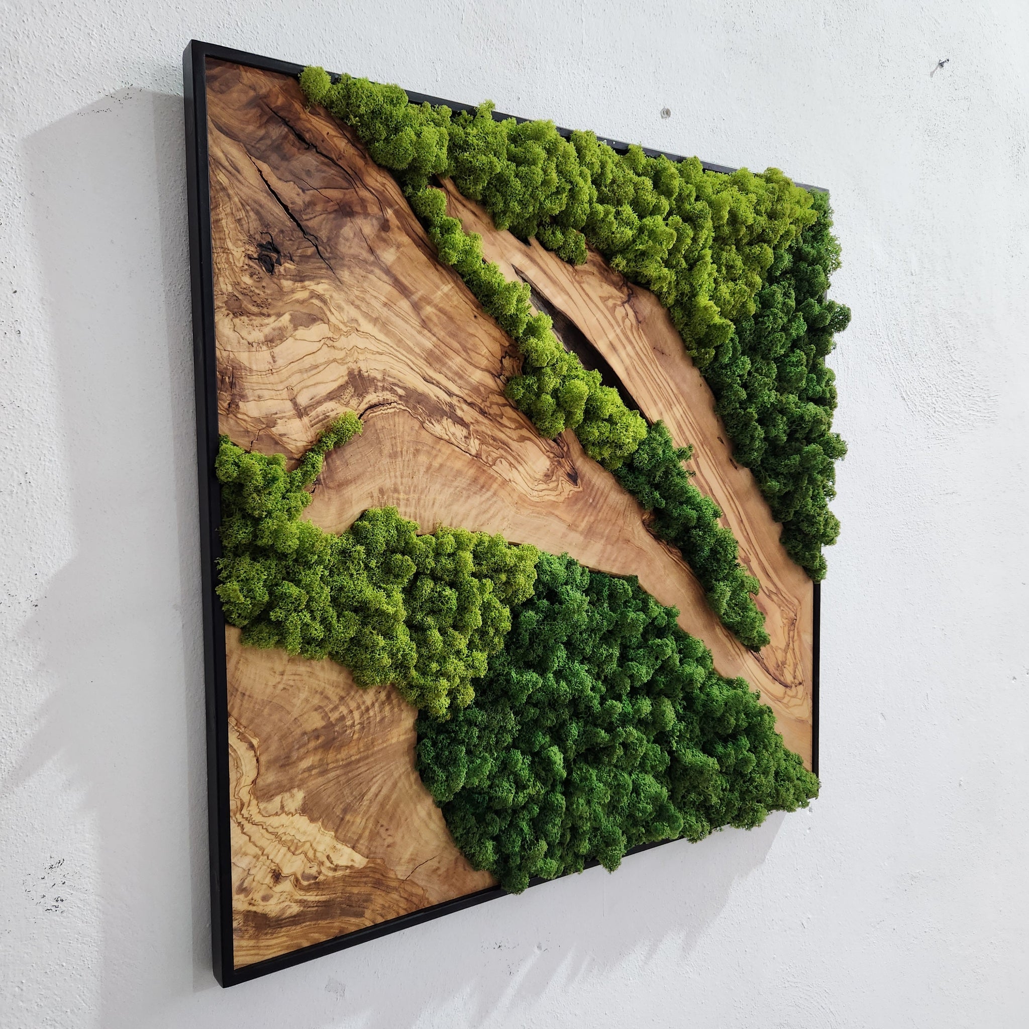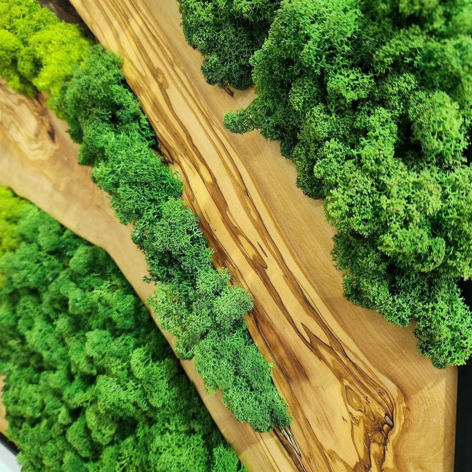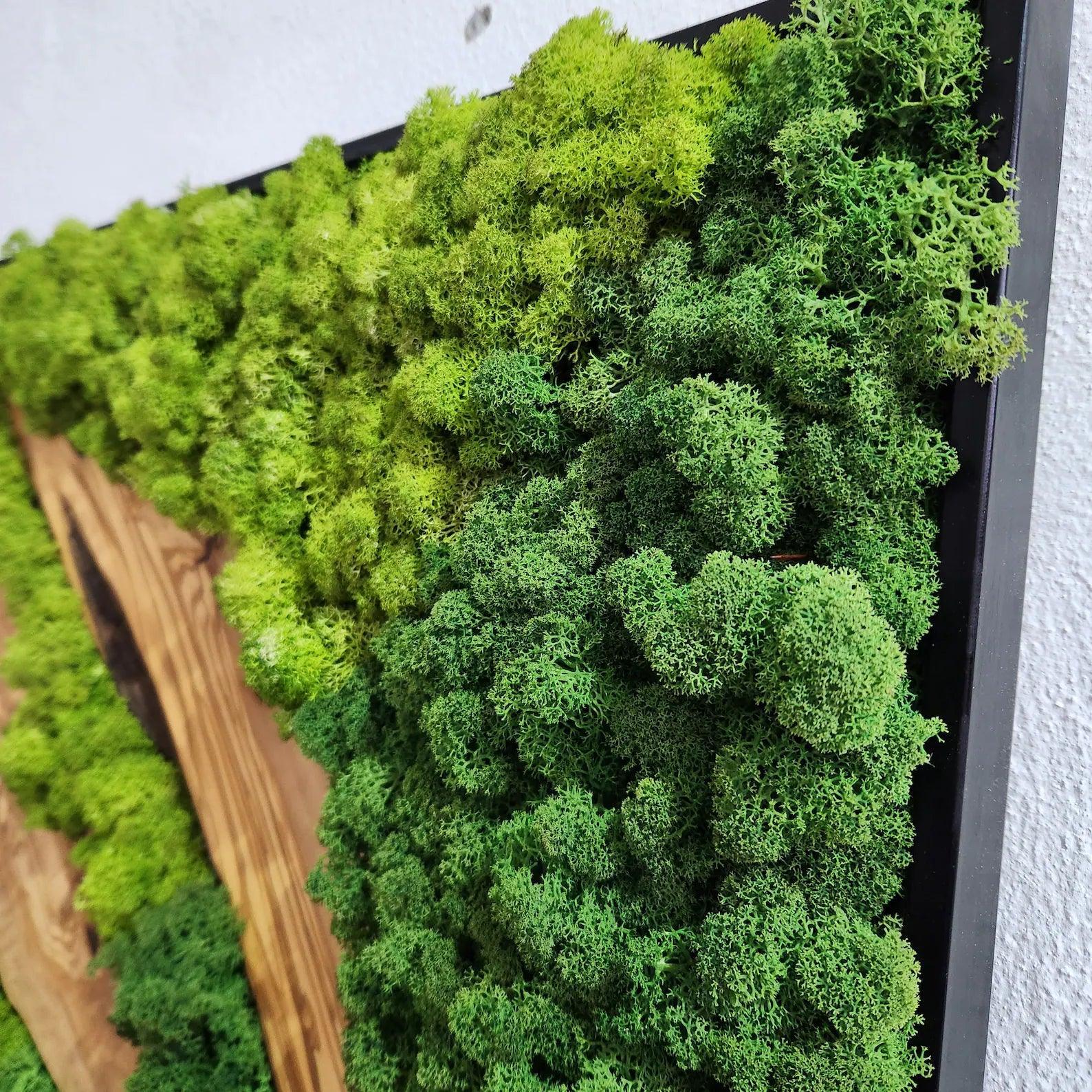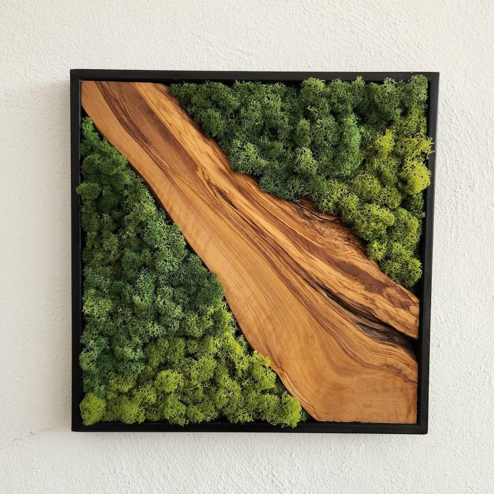 Moss and Olive Wood Wall Art | Metal Frame Moss Wall Decor