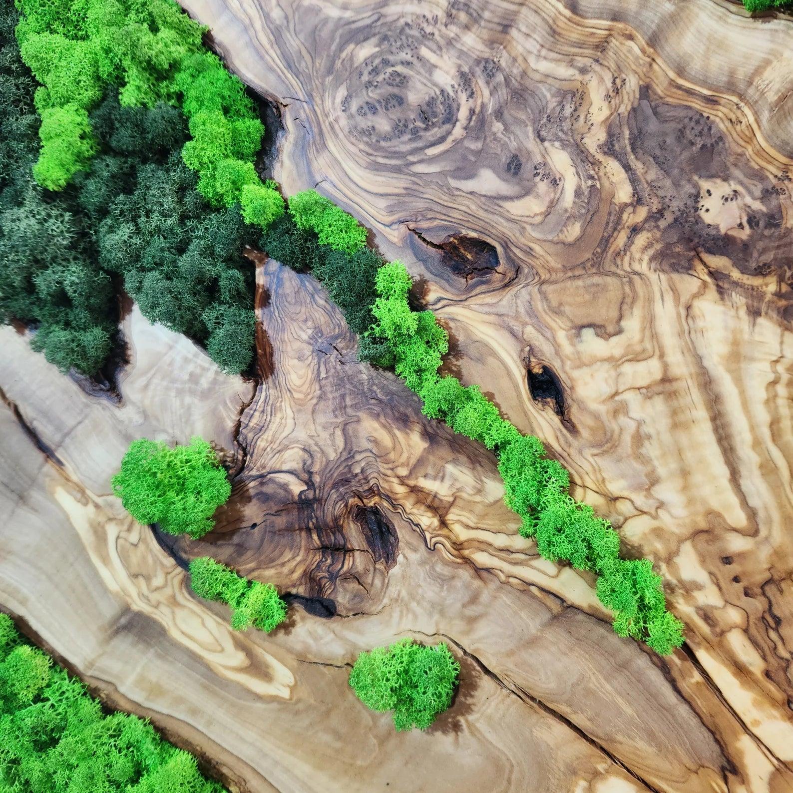 A custom made moss olive wood metal frame wall decor is a unique and personalized type of art that combines the natural elements of moss and wood with the sleekness of metal. The wall art is made to order, with the customer choosing the size, shape, and style of the art to fit their individual taste and decor preferences.