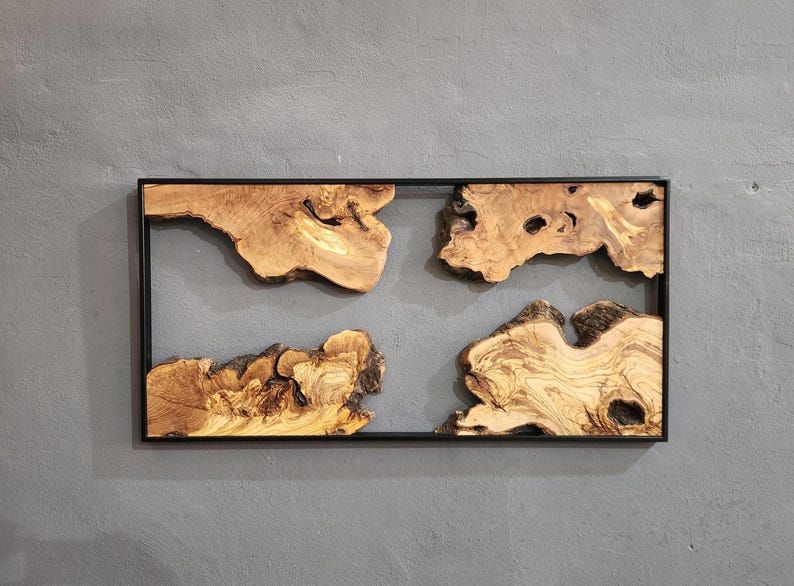Bring the raw beauty of nature into your home with this handmade olive wood wall art.