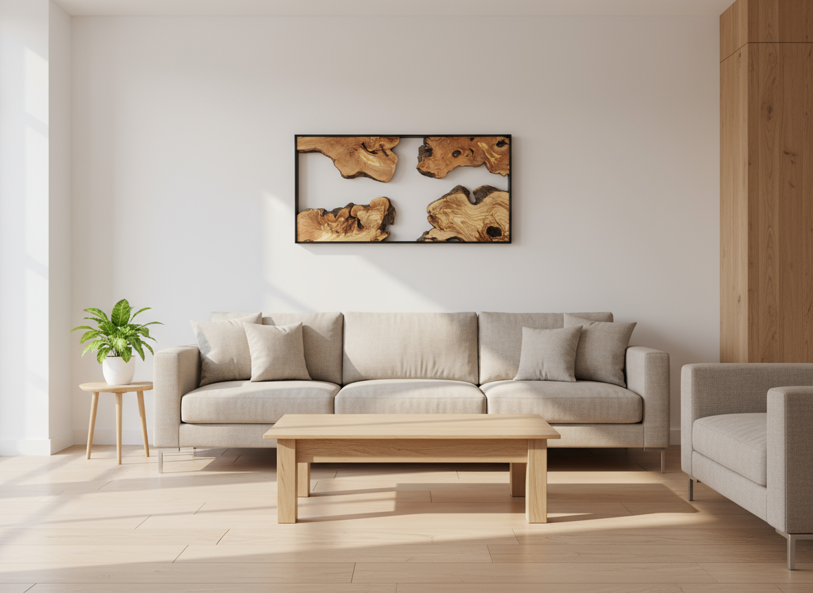 Natural Wood Wall Art with Live Edge Design in Black Frame